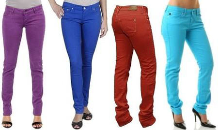· colori vivaci: avrete notato sicuramente che tra i negozi iniziano a vendere jeans di tutti i colori, che vanno dal giallo al viola. I jeans originali sono di color blu, ma i jeans colorati rendono sicuramente quest’estate più colorata e più vivace (vedi foto).